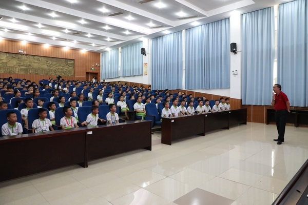 9月12日下午,開發(fā)區(qū)香暉園小學(xué)黨支部書記、校長陳澤湖在學(xué)校報告廳為該校五年級全體學(xué)生講授題為“我和我的祖國”的本學(xué)期第一堂思想政治教育課。