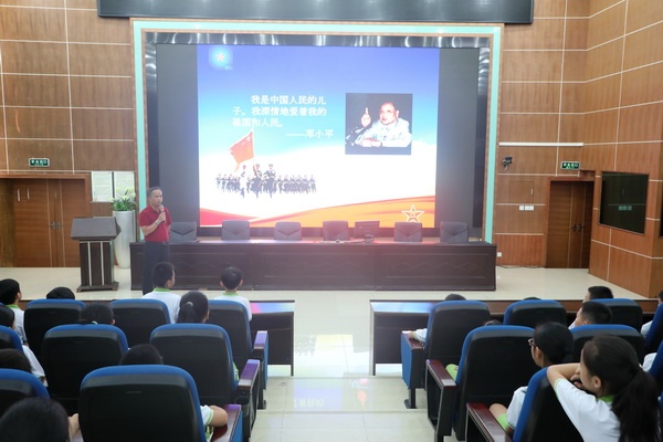 陳校長以鄧小平的一句話“我是中國人民的兒子,我深情地愛著我的祖國和人民”作為引入,向全體學(xué)生提出“弘揚愛國主義思想,做新時代有為青少年”的希望和要求。他從“了解我的祖國”、“為什么要愛國”、“在日常學(xué)習(xí)和生活中,我們小學(xué)生該如何愛國”等三個方面引導(dǎo)學(xué)生思考如何從優(yōu)秀榜樣的精神品格中汲取力量、思考如何度過有意義的學(xué)習(xí)生活,勇?lián)鷷r代使命等。陳校長講道,回望歷史,中華兒女歷來抱有振興民族家國情懷,有自強不息、艱苦奮斗的拼搏精神,有探求真理、好學(xué)力行的實踐精神。當(dāng)前,實現(xiàn)中華民族偉大復(fù)興的中國夢是時代“最強音”,希望同學(xué)們學(xué)會感恩,感恩父母、感恩老師、感恩祖國、感恩現(xiàn)有的生活,要有家國情懷的境界、艱苦奮斗的作風(fēng)、學(xué)以致用的目標(biāo)、崇善尚美的心態(tài)。