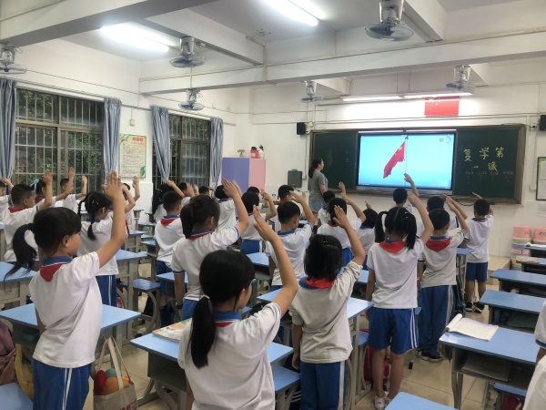 早上7:00,同學們陸陸續(xù)續(xù)踏進校園,在老師和“大腳丫”的指引下,有序地回到了班級。8:50,胡校長來到各班級,向同學們派發(fā)復學禮物——書簽,勉勵同學們好好學習,將來報效祖國。上午第一節(jié),班主任在教室內(nèi)組織進行復學后的第一次升旗儀式。同學們面向國旗,敬隊禮,唱國歌。接著,一至三年級觀看復學第一課《天使歸來,英雄開講》,在視頻中感悟當代國人的愛國情懷與責任擔當,致敬挺住風雨的堅強脊梁。隨后,班主任根據(jù)《在校一日生活指南》,指導同學們正確佩戴口罩和七步洗手法等個人防護知識。