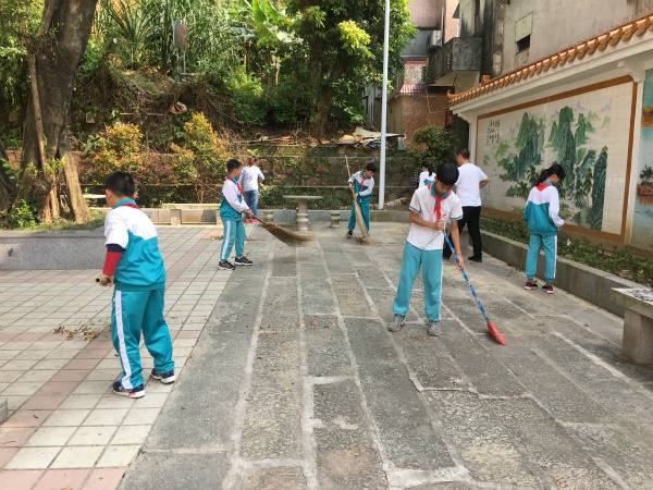 到達沙邊村良德公園后后,負責本次活動的羅老師安排好勞動范圍。對隊員和家長進行分組,定好負責組長,并強調(diào)注意事項。接著隊員們?nèi)齻€一群,五個一伙,就開始熱火朝天的干起來。隊員們不怕臟、不怕累,撿起石凳下的白色垃圾和丟在綠化叢中的所料袋;還有的地方有口香糖印,他們采用噴水、用鏟子鏟的方式,讓公園的地面變得干凈起來。在有些地方有些不易發(fā)現(xiàn)的煙頭和枯樹葉,他們也一點一點掃進垃圾鏟。在隊員們的共同努力下,公園地面的紙片、草叢中的垃圾袋都不見了,隊員們看著自己勞動成果,都感到非常欣慰開心。