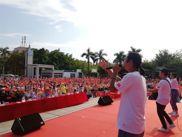 音樂老師賈飛的獨唱《幸福中國一起走》,拉開文藝匯演的序幕。中間還穿插了歌唱、舞蹈、朗誦、器樂合奏等節(jié)目。家長黎中明與冼嘉欣同學(xué)的合唱《我愛你中國》,燃爆全場,不少觀眾還跟唱起來。臺上臺下,3300余面小國旗同時揮動起來,與旗桿上的國旗遙相輝映,形成一道愛國熱潮的“風(fēng)景線”。