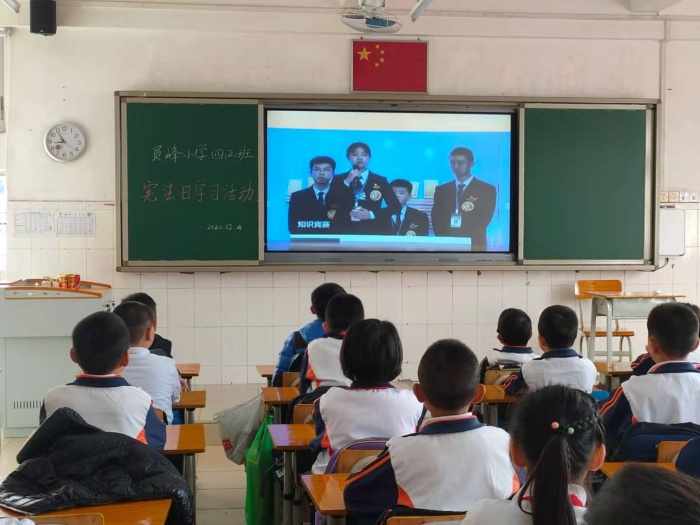 石岐區(qū)員峰小學(xué)利用周一國旗下講話時間進(jìn)行憲法學(xué)習(xí)和宣傳活動,活動中,劉曉君副校長讓學(xué)生了解了憲法是我國的根本大法,號召同學(xué)們學(xué)習(xí)法律知識,樹立法治觀念,遵守憲法和法律。接著各班班主任利用班會課在班級開展學(xué)法活動,引導(dǎo)學(xué)生遵守憲法。 在12月4日當(dāng)天,組織全體師生登陸青少年普法網(wǎng)站,收看網(wǎng)絡(luò)直播,進(jìn)行憲法晨讀活動。在憲法學(xué)習(xí)周,員峰小學(xué)還組織全體學(xué)生、家長開展憲法知識競賽,在網(wǎng)上答題,爭創(chuàng)憲法小衛(wèi)士,做到了全員參與。