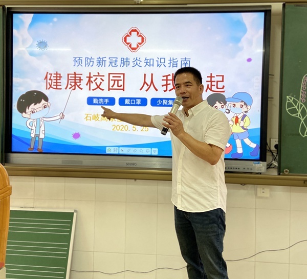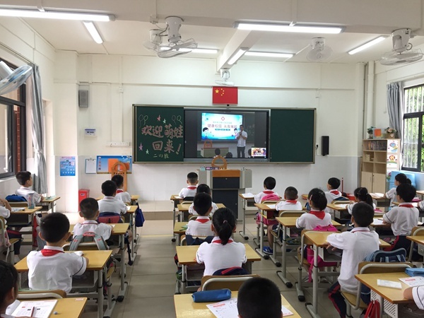 回歸班級(jí),學(xué)生在正副班主任的歡迎聲中走進(jìn)了久違的教室,見到了多日未見的同學(xué)們。第一節(jié)班隊(duì)會(huì)課,吳嬋娟主任組織學(xué)生在教室舉行升旗儀式,同學(xué)們整齊佩戴紅領(lǐng)巾,唱國(guó)歌,向五星紅旗行隊(duì)禮。學(xué)生個(gè)個(gè)高聲唱起國(guó)歌,眼神堅(jiān)定,精神飽滿,用最好的狀態(tài)迎接“開學(xué)第一課”。緊接著,黃榮勝校長(zhǎng)進(jìn)行開學(xué)致辭,題為”健康校園,從我做起”。黃榮勝校長(zhǎng)通過以下幾點(diǎn)進(jìn)行介紹:一、介紹新型冠狀病毒肺炎的相關(guān)常識(shí);二、教導(dǎo)孩子正確的洗手方法;三、為同學(xué)們提供校園防控方法并做了詳細(xì)說明。四、寄語(yǔ)新學(xué)期。最后,由各班班主任對(duì)線上學(xué)習(xí)進(jìn)行小結(jié),了解關(guān)心學(xué)生的學(xué)習(xí)生活,并帶領(lǐng)學(xué)生學(xué)習(xí)一日常規(guī),保證學(xué)生能夠更快適應(yīng)校園生活,更好投入到班級(jí)學(xué)習(xí)中來。