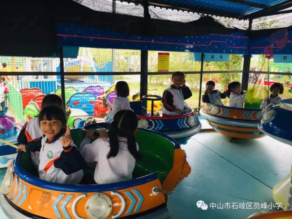 中午,陽光溫?zé)幔⒆觽儓F團圍坐,舉行了次小型的聚餐。望著蔚藍(lán)的天空和滿目的秋色,大家滿心歡喜,喜悅溢于臉上。午飯后同學(xué)們盡情玩了園內(nèi)地各種游戲,旋轉(zhuǎn)木馬、太空 、飛碟、海盜船......喜歡冒險和挑戰(zhàn)的孩子們怎能錯過證明自己膽量的好機會!