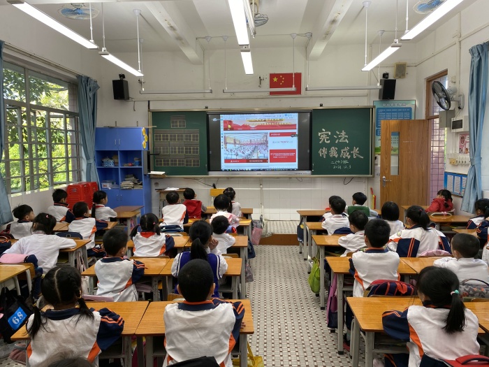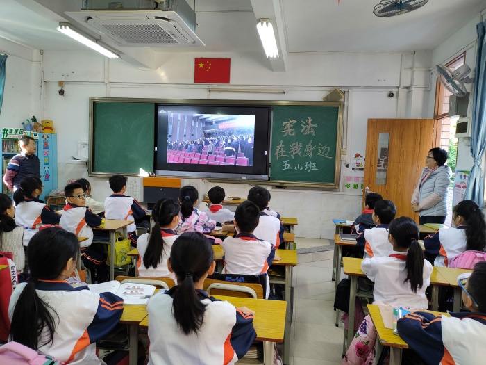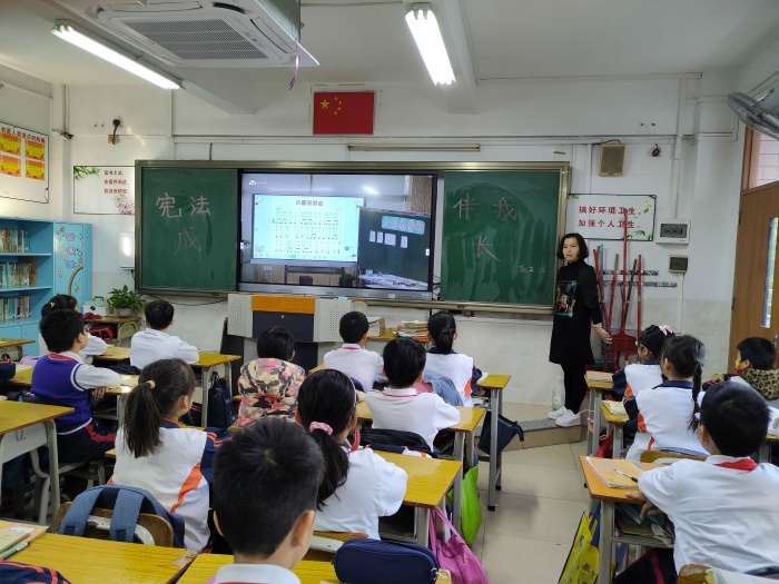為推動教育系統(tǒng)學(xué)習(xí)宣傳憲法,弘揚憲法精神,維護憲法權(quán)威。在第八個憲法日到來之際,石岐實驗小學(xué)于12月3日上午,通過青少年普法網(wǎng)觀看教育部在北京舉辦的“憲法晨讀”活動,且于9:05-9:15時段同步開展“憲法晨讀”活動。