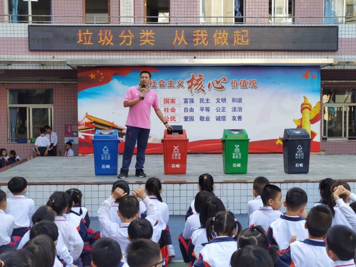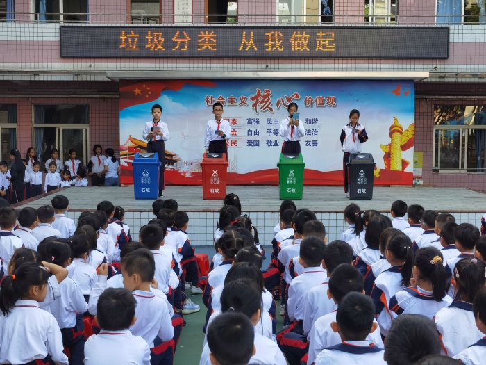 習(xí)近平總書記指出“垃圾分類工作就是新時(shí)尚”。推行垃圾分類,對于改善人居環(huán)境,實(shí)現(xiàn)城市的可持續(xù)發(fā)展,創(chuàng)建節(jié)約型社會具有重要意義。垃圾分類,舉手之勞,變廢為寶,人人有責(zé)。為了中山天更藍(lán)、水更清、山更綠、環(huán)境更美好,讓石岐實(shí)驗(yàn)小學(xué)的孩子對垃圾分類有更深的認(rèn)識。在2020年11月16日早上升旗儀式后,石岐實(shí)驗(yàn)小學(xué)進(jìn)行了主題為“垃圾分類 從我做起”垃圾分類倡議活動。