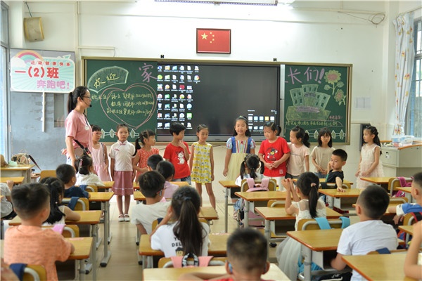 為使此次活動(dòng)順利開展,戴織校長(zhǎng)帶領(lǐng)相關(guān)行政、教師隊(duì)伍提前回校舉行了新生培訓(xùn)工作會(huì)議,進(jìn)行了細(xì)致充分的準(zhǔn)備工作。8月28日早上,學(xué)校領(lǐng)導(dǎo)和老師在校門口歡迎一年級(jí)新同學(xué)的到來,熱情指引孩子們找到自己的課室。一年級(jí)正、副班主任在課室門口用親切的問候、溫暖的笑容迎接孩子。老師與小朋友互相介紹,了解彼此,孩子們漸漸消除了陌生感。培訓(xùn)內(nèi)容豐富而充實(shí),教師們就學(xué)生的課堂行為規(guī)范、課間文明休息、衛(wèi)生習(xí)慣、隊(duì)列訓(xùn)練與安全事項(xiàng)等進(jìn)行了寓教于樂的培訓(xùn),幫助新生樹立集體觀念和紀(jì)律觀念,使其形成良好的學(xué)習(xí)與行為習(xí)慣。孩子們?cè)谏鷦?dòng)、活潑的入學(xué)培訓(xùn)中認(rèn)識(shí)了新伙伴、熟悉了新校園、學(xué)會(huì)了新本領(lǐng)。