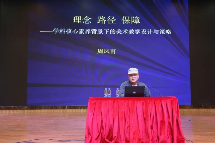 最后,就是本次活動(dòng)更加精彩的環(huán)節(jié),周鳳甫老師的專題講座《理念、路徑、保障——學(xué)科核心素養(yǎng)背景下的美術(shù)教學(xué)設(shè)計(jì)與策略》,倡導(dǎo)主題性研究型美學(xué)、“大概念”——“基本問(wèn)題”——“小問(wèn)題”課程模式等有效建議。從理論聯(lián)系實(shí)際、從實(shí)際提升理論,在周老師不斷的轉(zhuǎn)化之中,讓聽(tīng)者清晰明確的了解了最新的教學(xué)思路和超前的美術(shù)教學(xué)理論,讓每位老師都受益匪淺。