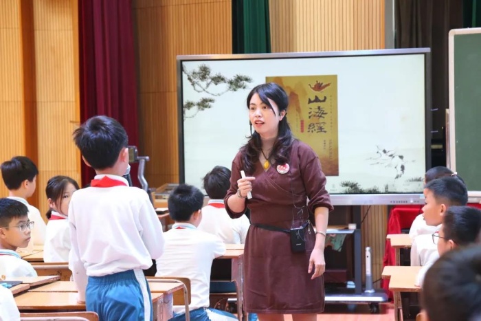 第二部分為觀摩課和講座部分。由大信學(xué)校劉麗妍老師帶來(lái)的剪紙?zhí)厣虒W(xué)觀摩課《山海經(jīng)奇想》,從奇書(shū)《山海經(jīng)》取材,結(jié)合“盲剪”的技巧,課程內(nèi)容層層遞進(jìn),整堂課無(wú)論是教學(xué)內(nèi)容、教學(xué)設(shè)計(jì)還是組織形式都體現(xiàn)了很新的教學(xué)理念,教學(xué)思路清晰,目標(biāo)明確,教學(xué)中突出學(xué)生的主體地位,注重培養(yǎng)學(xué)生各種能力,課堂開(kāi)放而富有活力。多媒體“希沃”白板的運(yùn)用,讓信息技術(shù)完全為課堂的重難點(diǎn)服務(wù),事半功倍,一箭雙雕。