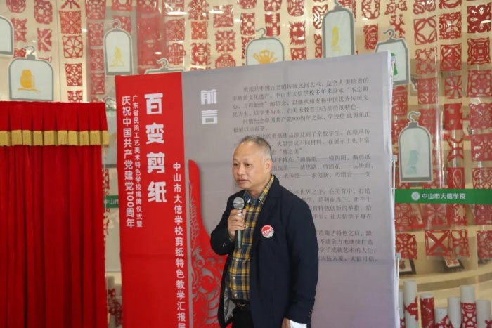 百年風(fēng)雨、百年歷程。2021年是中國(guó)共產(chǎn)黨建黨100周年,為了促進(jìn)中山市大信學(xué)校學(xué)生的全面發(fā)展,構(gòu)建高質(zhì)量、高水平的素質(zhì)教育實(shí)施體系,更好地實(shí)現(xiàn)“學(xué)校有特色,教師有專長(zhǎng),學(xué)生有特長(zhǎng)”,大信學(xué)校美術(shù)教育開(kāi)展了特色建設(shè)的研究與實(shí)踐,培養(yǎng)學(xué)生發(fā)現(xiàn)美、表現(xiàn)美、創(chuàng)造美的美好情趣,進(jìn)一步以藝術(shù)手段發(fā)展學(xué)生個(gè)性特長(zhǎng),提升孩子們的藝術(shù)素養(yǎng),特此舉辦中山市大信學(xué)?!皬V東省民間工藝美術(shù)特色學(xué)校”揭牌儀式暨“百變剪紙”特色匯報(bào)展。