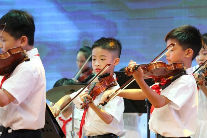每顆星星都閃耀著獨特光芒,大信無數(shù)顆小星宿共同璀璨,秀出出七彩光芒,彰顯美好童年。十六個優(yōu)秀集體以《龍的傳人》驕傲自豪;民樂合奏《喜洋洋》讓大信群星神采奕奕;六月的大信學校,綠樹成蔭,鮮花盛開,百靈齊唱《萱草花》、不一樣的《梨花又開放》。