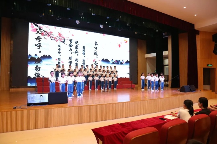 一、二年級(jí)美文誦讀活動(dòng),為讀書(shū)節(jié)添上了濃墨重彩的一筆。激情飛揚(yáng)的吟唱、清新儒雅的低誦,一首首耳熟能詳、膾炙人口的經(jīng)典詩(shī)文,在同學(xué)們的精心演繹下,以不同的形式表達(dá)了對(duì)經(jīng)典詩(shī)文的理解——悠悠詩(shī)韻,淡淡墨香,孩子們通過(guò)演繹《四季詩(shī)韻》、《月令詩(shī)詞》,將描寫(xiě)四季的詩(shī)歌巧妙地串在了一起,演繹了別樣的四季;瑯瑯上口的《三字經(jīng)》、《弟子規(guī)》、《笠翁對(duì)韻》,讓孩子們?cè)谡b讀中感受蒙學(xué)經(jīng)典的獨(dú)特韻味;《古朗月行》、《靜夜思》、《贈(zèng)汪倫》、《游子吟》……孩子們用粵語(yǔ)吟誦一首首耳熟能詳?shù)墓旁?shī),充分地理解了古詩(shī)的意境美;《春之令》以飛花令形式展開(kāi),孩子們靈動(dòng)的語(yǔ)言,可愛(ài)的笑容,俘獲了臺(tái)下小觀眾們的心;《唐詩(shī)里的中國(guó)》別具一格傾情演繹,在歌聲、朗誦、舞蹈中將唐詩(shī)之美表現(xiàn)得淋漓盡致……