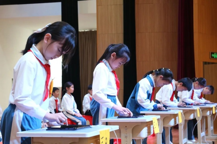三、四年級(jí)漢字聽(tīng)寫(xiě)大賽為讀書(shū)節(jié)增添了別樣的風(fēng)采。擂臺(tái)賽上,參賽選手凝神靜氣,全神貫注地聽(tīng)題,“橫豎勾,點(diǎn)撇捺……”選手們沉著冷靜,時(shí)而思考,時(shí)而書(shū)寫(xiě),每一個(gè)自然舒展、妙手在心的漢字背后,都凝結(jié)了老師、同學(xué)們平日的勤學(xué)苦練。最終,梁鎬楊同學(xué)獲得三年級(jí)漢字聽(tīng)寫(xiě)大賽的冠軍,羅若水、魏偉霖同學(xué)獲得四年級(jí)漢字聽(tīng)寫(xiě)大會(huì)的冠軍,還有多位同學(xué)獲得“漢字小達(dá)人”的榮譽(yù)稱號(hào)。