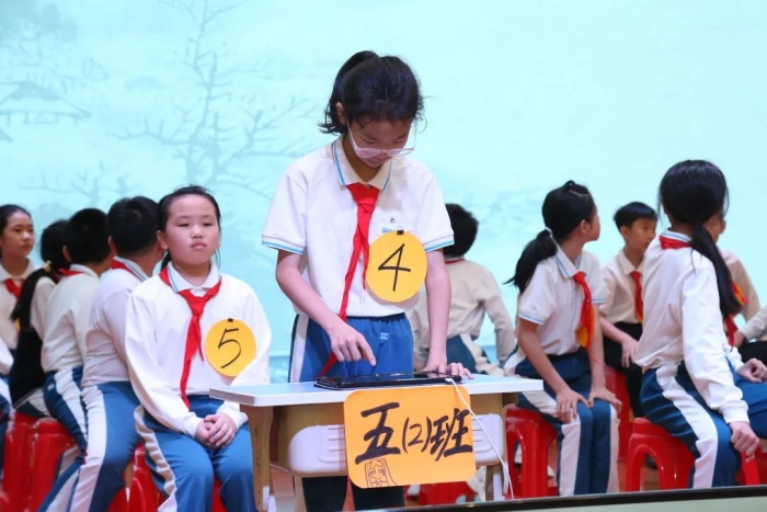 人間自是有絕句,紅塵有幸能讀詩(shī)。五年級(jí)詩(shī)詞大會(huì)為讀書(shū)節(jié)擦亮了詩(shī)韻風(fēng)骨。詩(shī)詞大會(huì)帶領(lǐng)孩子們看“人面桃花相映紅”,聽(tīng)“稻花香里說(shuō)豐年”,嘆“霜葉紅于二月花”。