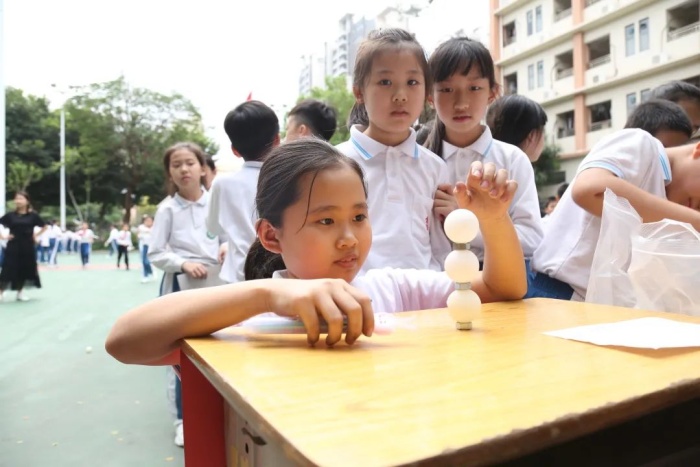 科技大游園活動涵蓋了物理、生物、數學、科學、信息五大學科。小學數學有數學趣題、魯班鎖拼裝、24點、數獨游戲等;小學信息有觸控交互體驗、編碼游戲、AI體驗項目;小學科學有紙飛機穿環(huán)、輝光球體驗、乒乓球疊高、遙控賽車體驗、電路大沖關、手勢四軸體驗、顯微鏡等。初中數學開展了智取火柴棒,猜年齡,抓堆堆等活動,讓學生感受到數學與博弈論之間的聯(lián)系,激發(fā)數學學習熱情。物理科組的項目豐富多樣,有心形電動機,自制電磁小火車,反重力圓筒,抽水小專家,竹簽串串球,吸管穿土豆,跳水冠軍,讓學生領悟物理之美,生活處處皆物理。生物學科開展了套取指紋,生物知識小競賽,體驗顯微鏡大世界,展示人體模型,感受人體的奧秘。地理學科給學生展示了土壤標本和望遠鏡,讓大家了解不同的地質文化和望遠鏡的構造。化學學科有自制酸堿指示劑,變色反應,隱形墨水,學生通過所學的化學知識解答生活中的魔術變色。