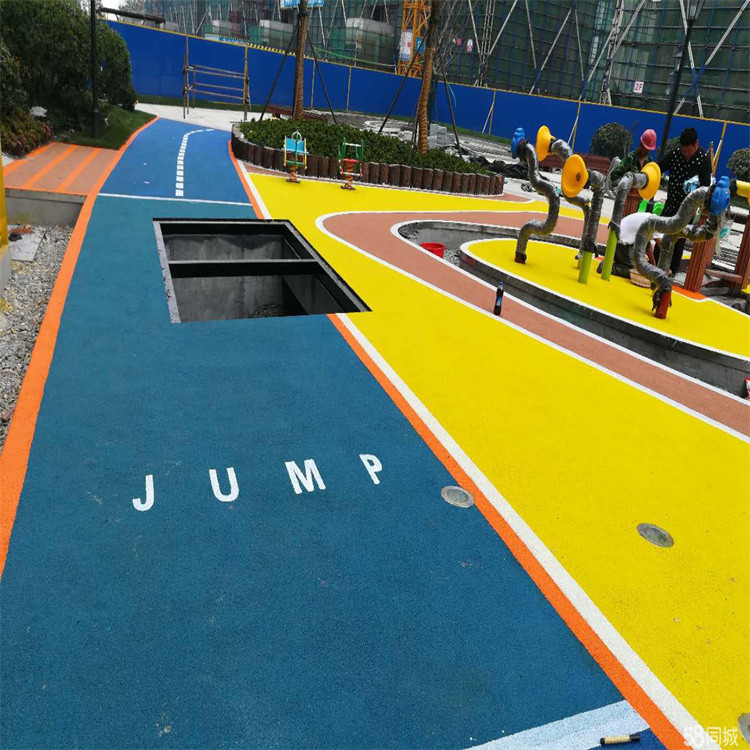 (3) 在充分準(zhǔn)備的前提下,了解天氣趨勢,并測定當(dāng)時 地面含水率≤10,向監(jiān)理工程師報告得到允許后進行基材攤鋪工 序。①、基材混合攪拌 1)材料攪拌場所應(yīng)鋪設(shè)膠布或塑料布,避免沾污地面損及施工品質(zhì) 及影響環(huán)境清潔。 2)攪拌桶之容量為攪拌量的 1.5-2 倍,使用前攪拌桶應(yīng)干燥及清潔。 3)混合材料時應(yīng)先倒入單組分粘接劑并使攪拌桶邊全面浸附后再倒 入黑膠粒。
