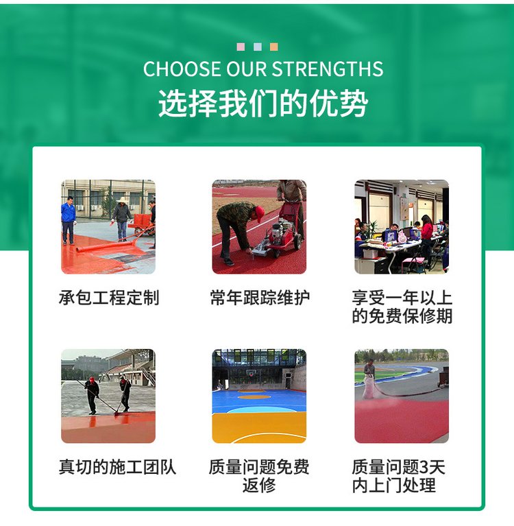 1、塑膠跑道鋪設(shè)完工后,須要頤養(yǎng)7-10天后能夠使用。