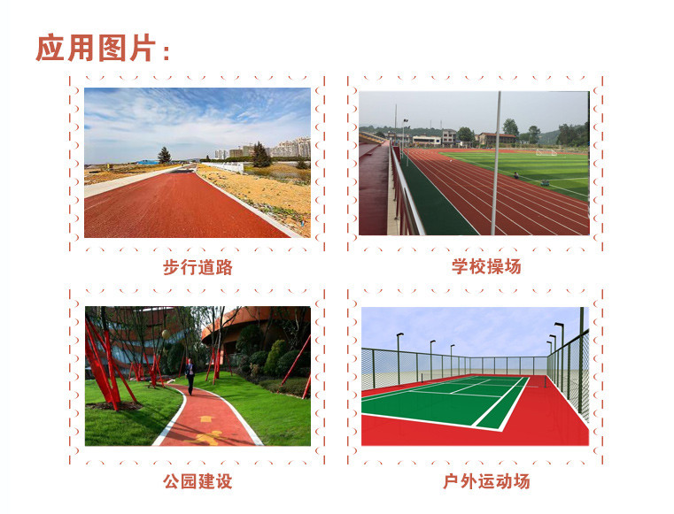 PU顆粒、顏料、助劑、填料組成。塑膠跑道具有平整度好、抗壓強(qiáng)度高、硬度彈性適當(dāng)、物理性