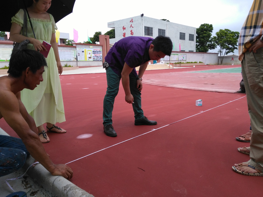 5、復(fù)合型塑膠跑道目前我國尚未有規(guī)定的標(biāo)準(zhǔn),所提供用戶及有關(guān)檢測部門的物理性能及機(jī)械性能的數(shù)據(jù)是參照企業(yè)標(biāo)準(zhǔn)執(zhí)行。