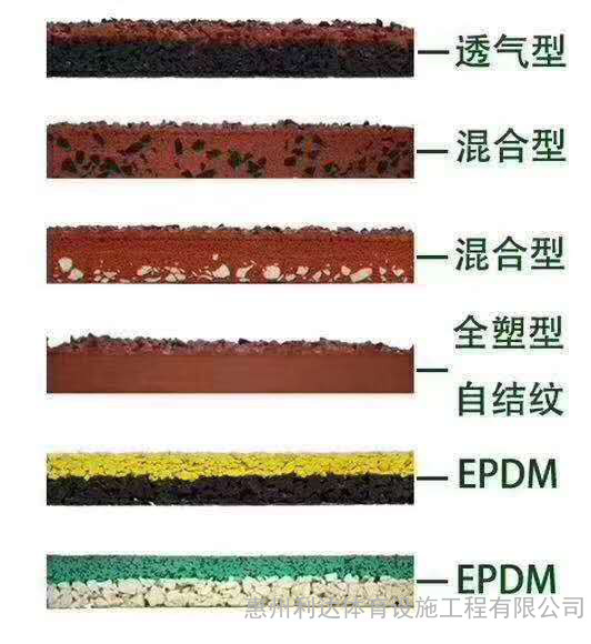 2、與透氣型塑膠跑道、混合型塑膠跑道和預(yù)鑄型橡膠跑道等運(yùn)動(dòng)場地相比,復(fù)合型塑膠跑道運(yùn)動(dòng)場地,其外觀與混合型塑膠跑道一致,除拉伸強(qiáng)度外其它數(shù)據(jù)與混合型塑膠跑道基本一致。