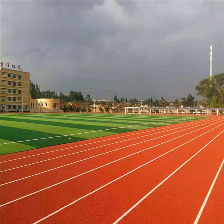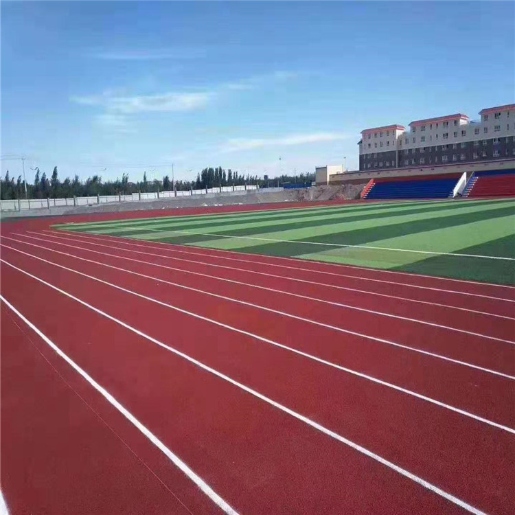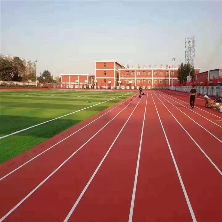 或PU顆粒、顏料、助劑、填料組成。塑膠跑道具有平整度好、抗壓強度高、硬度彈性適當(dāng)、物
