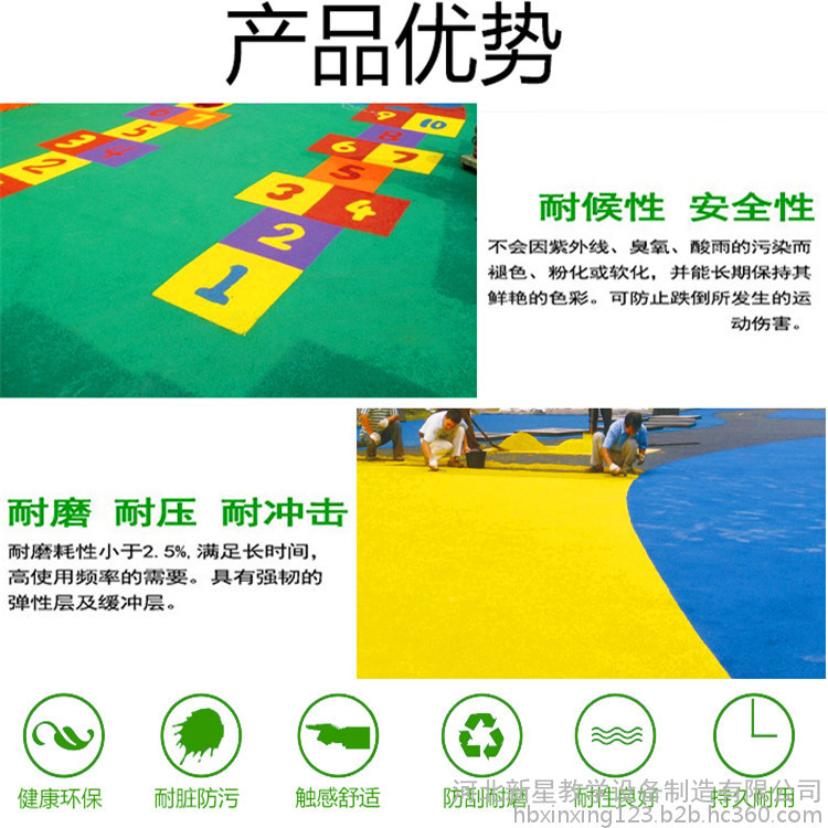 塑膠跑道的主要成分是丙烯酸和高質(zhì)量樹脂,其材料類似于盛放食品的方便袋,符合環(huán)保型面層材料要求。塑膠跑道的原材料對環(huán)境、人體無毒無害。且具有防紫外光、防磨損、防爆裂、抗老化、壽命長、容易保養(yǎng)、維修費用低等特點。