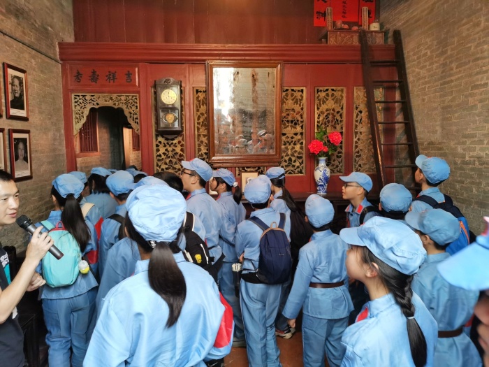4月25日,天公作美,風和日麗、碧空如洗。中山火炬高技術產(chǎn)業(yè)開發(fā)區(qū)第一小學六年級(4)班在家委的精心組織下,全班51個親子家庭齊聚一堂,出發(fā)前往中山沙溪鎮(zhèn)明亭村參觀申明亭革命史跡館和揚子江故居,開展以“踏尋紅色足跡,共慶建黨100周年”為主題的親子研學活動。