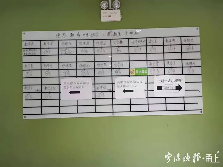 與上學(xué)期相比,現(xiàn)在的新東方明顯冷清了很多。當(dāng)天晚上只有三間教室開課,分別是數(shù)學(xué)、科學(xué)、英語。其中,科學(xué)教室里有8名學(xué)生,英語教室里有6名學(xué)生。