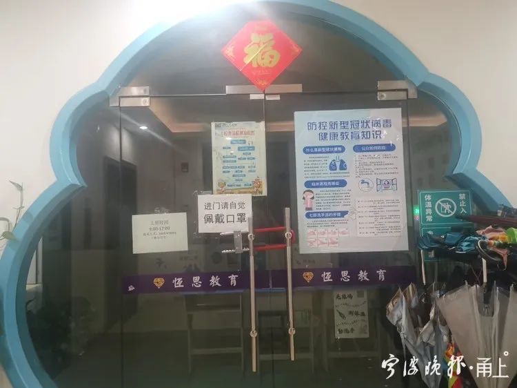 “宏勝教育培訓(xùn)”大門緊閉上了鎖;“引力教育”門口不時地有小朋友來上英語課;“新狀元培優(yōu)”“交大智立方”兩家培訓(xùn)機(jī)構(gòu)也都有學(xué)生在里面上課。