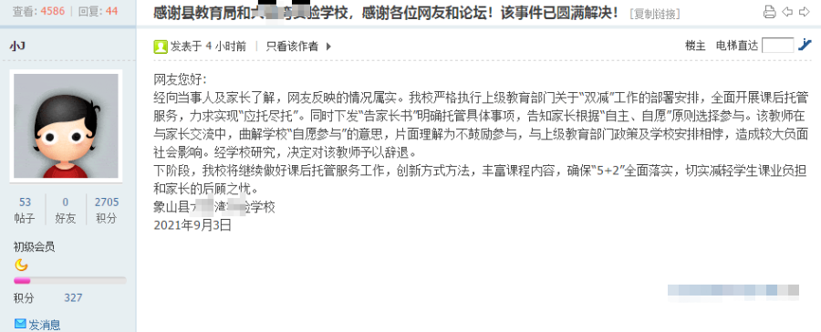 希望這是第一個因為“雙減”被開除的班主任,也是最后一個,希望再遇到這樣的問題的時候,我們能有更好的解決方法,至少在家長老師的交流態(tài)度上要更和平一些。
