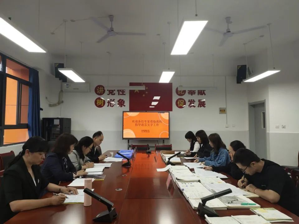 未央?yún)^(qū)語委辦王蓉老師、侯若忻老師,未央?yún)^(qū)進(jìn)校教研室中學(xué)語文教研員王敏霞,市級(jí)語言文字示范校大明宮小學(xué)副校長(zhǎng)何凱祥,一行4人,通過聽取匯報(bào)、查閱資料、查看校園文化、學(xué)生教師座談等幾個(gè)環(huán)節(jié)對(duì)“名校+”教育聯(lián)合體語言文字工作進(jìn)行了全面的檢查和了解。檢查組首先聽取了“名校+”聯(lián)系人三星小學(xué)副校長(zhǎng)白亞榮的“名校+”教育聯(lián)合體語言文字工作匯報(bào)。