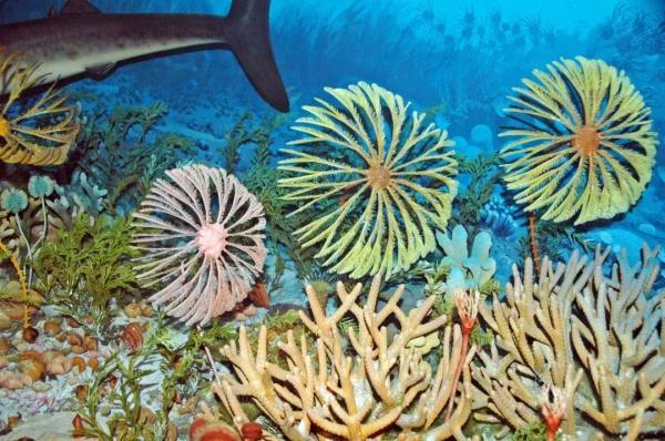 泥盆紀(jì)海底環(huán)境復(fù)原模型中的海百合 | James St. John