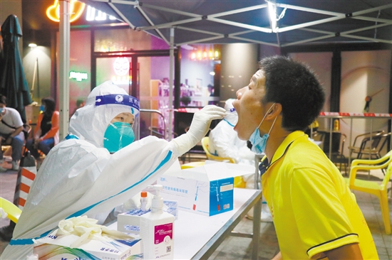 當晚7點,演練開始,公安部門第一時間對管控區(qū)域拉起了警戒線,設立卡點進行管控。封控區(qū)實行“封閉隔離、足不出戶、服務上門”,管控區(qū)實行“只進不出”的管理措施。社區(qū)三人組上門將“密接人員”帶下樓,交接給重點人員轉運專班,由防疫專車閉環(huán)轉運至集中隔離場所進行集中隔離。醫(yī)護人員進入封控區(qū)為居民進行上門采樣,網格員無接觸將生活物資送上門,并通知居民自行開門收取。與此同時,網格員通過上門、電話等多種形式,組織管控區(qū)的住戶到采樣點接受核酸檢測。在網格員和志愿者指引下,居民在采樣點排隊,井然有序地完成采樣。