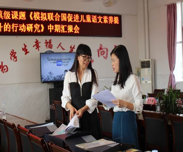 接著,鎮(zhèn)課題專家組的陳紅主任根據(jù)推進(jìn)情況進(jìn)行了專業(yè)而細(xì)致的點(diǎn)評。她首先肯定了課題組的成員所進(jìn)行的富有成效的工作,贊賞《模擬聯(lián)合國促進(jìn)兒童語文素養(yǎng)提升的行動(dòng)研究》選題富有新意,很有研究價(jià)值。目前,“模擬聯(lián)合國”多數(shù)是在大學(xué)、高中階段開展研究,鮮少在小學(xué)進(jìn)行。課題組成員能大膽嘗試,進(jìn)行創(chuàng)造性工作。同時(shí),陳主任也指出課題推進(jìn)當(dāng)中的不足,指導(dǎo)課題組老師可以收集心得收獲、圖片、抓拍視頻,準(zhǔn)備更有價(jià)值的資料,勉勵(lì)老師們再接再厲,把課題做得更加扎實(shí)細(xì)致。