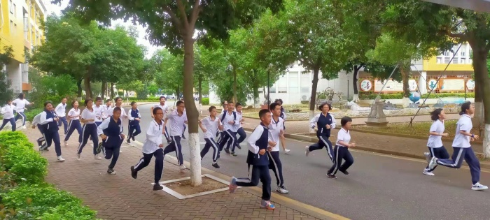 一陣急促的警報聲響起,學(xué)生們迅速用袖子捂住口鼻,彎著腰,跑向操場。全體教師按照既定的路線,組織學(xué)生有序逃生。全體人員撤離到運動場后,立即清點人數(shù)并向主席臺匯報。整個演練過程緊張有序,全體師生全部撤離到安全區(qū)域,達到較好的演練效果。
