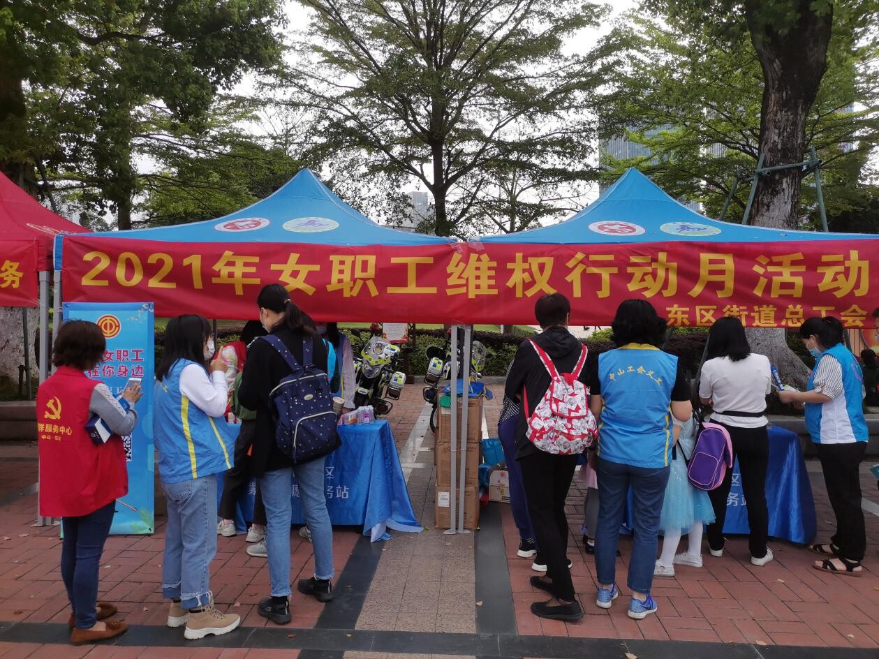 為在廣大女職工中大力弘揚(yáng)法治精神,大力普及法治知識(shí),積極引導(dǎo)廣大女職工自覺守法、遇事找法、解決問題靠法,依法維護(hù)女職工合法權(quán)益。3月14日上午,東區(qū)街道總工會(huì)在紫馬嶺公園門口開展2021年女職工維權(quán)行動(dòng)月宣傳活動(dòng)。