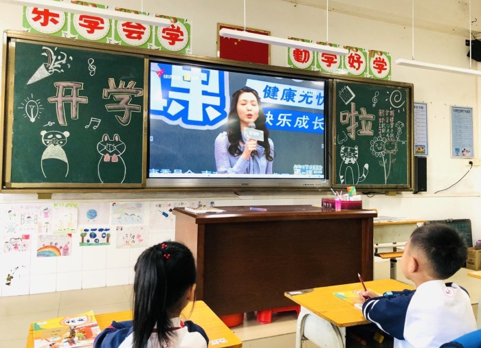 聆聽了梁校長的致辭后,孩子們回到教室,觀看以“健康無憂,快樂成長”為主題的開學(xué)健康安全第一課?!堕_學(xué)健康安全第一課》是廣東省教育廳聯(lián)合省、市相關(guān)部門聯(lián)合給孩子們送上的一份特殊開學(xué)禮物。學(xué)校德育處和少工委根據(jù)上級有關(guān)文件精神和要求,精心組織,大力宣揚。在課堂中,各行各業(yè)的專家和學(xué)者們與大家分享了疫情防控、禁毒知識、近視防控和心理健康等方面的知識。孩子們聆聽了醫(yī)生講述的抗疫故事,并學(xué)會在疫情防控常態(tài)化的情況下如何科學(xué)做好防護;懂得了如何認(rèn)識毒品,并遠(yuǎn)離毒品;學(xué)會了科學(xué)防控近視的好方法;掌握了培養(yǎng)積極的情緒的小妙招;認(rèn)識了防詐騙的一些小技巧,提高了自身防范意識,保護好自己的金融安全。孩子們在班主任的精心組織下,認(rèn)真觀看,積極討論,收獲滿滿!