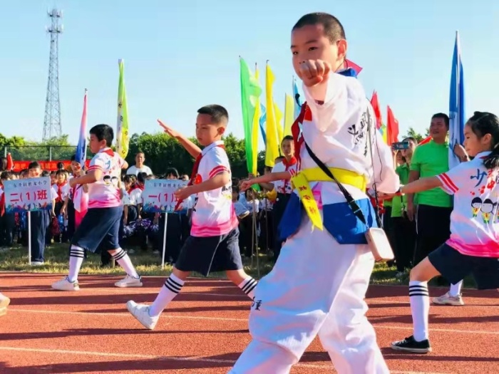 上午8點正,隨著運動員進行曲的響起,彩旗隊、各班運動員隊,一個接一個的方陣在響亮、整齊的口號聲中,踏著矯健的步伐經(jīng)過主席臺,接受學校領導對他們的檢閱。各班級方陣還帶來了拉丁舞蹈、街舞、軍體拳、跆拳道等不同主題卻又豐富多彩的精彩展示。精彩的入場儀式結(jié)束后,舉行了升國旗儀式。隨后,梁照文校長為這次運動會致開幕詞,裁判員代表、運動員代表進行了宣誓。伴隨主持人的一聲宣布,勝龍小學2020年秋季田徑運動會正式開始!