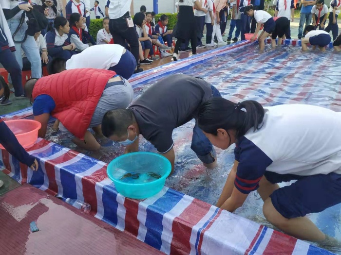 據(jù)悉,這是一場極具創(chuàng)造性、趣味性、參與性和娛樂性的水鄉(xiāng)趣味運動會。由親子比賽和班際集體比賽兩部分組成。親子比賽項目包括兩人三足、樂樂棒球、滾鐵環(huán)接力、趣味抓泥鰍等;班際集體比賽項目有拔河和抓泥鰍。