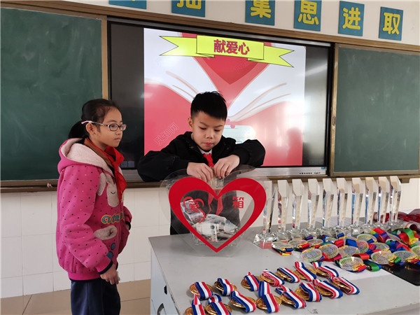 接下來,學(xué)校分班級進行了“慈善萬人行”捐款活動,各位老師也紛紛獻出自己的愛心。