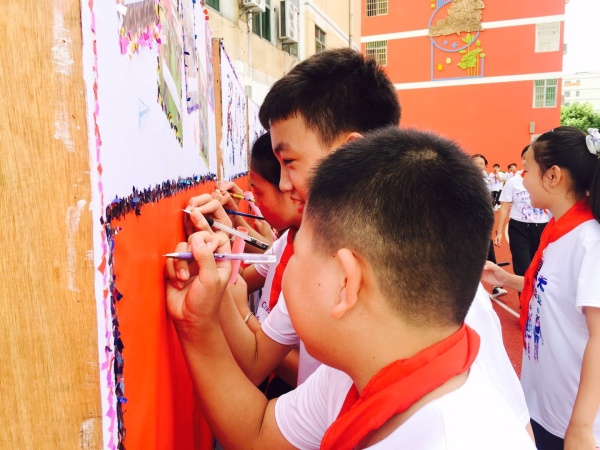 演出結(jié)束后,每位學生在畢業(yè)寄語墻上寫下了自己對學校想說的話,送給母校最后一份祝福,寫完之后走過“夢想之門”,與母校揮別,與這六年的小學生活揮別,憧憬即將到來的中學生活。