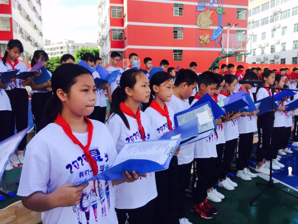 活動開始后,首先進行升國旗,全體師生齊唱國歌,雄壯的《義勇軍進行曲》回蕩在校園上空。緊接著主持人向師生們介紹到場嘉賓以及領導。在班主任給同學們頒發(fā)畢業(yè)證書后,畢業(yè)典禮節(jié)目匯演正式開始。