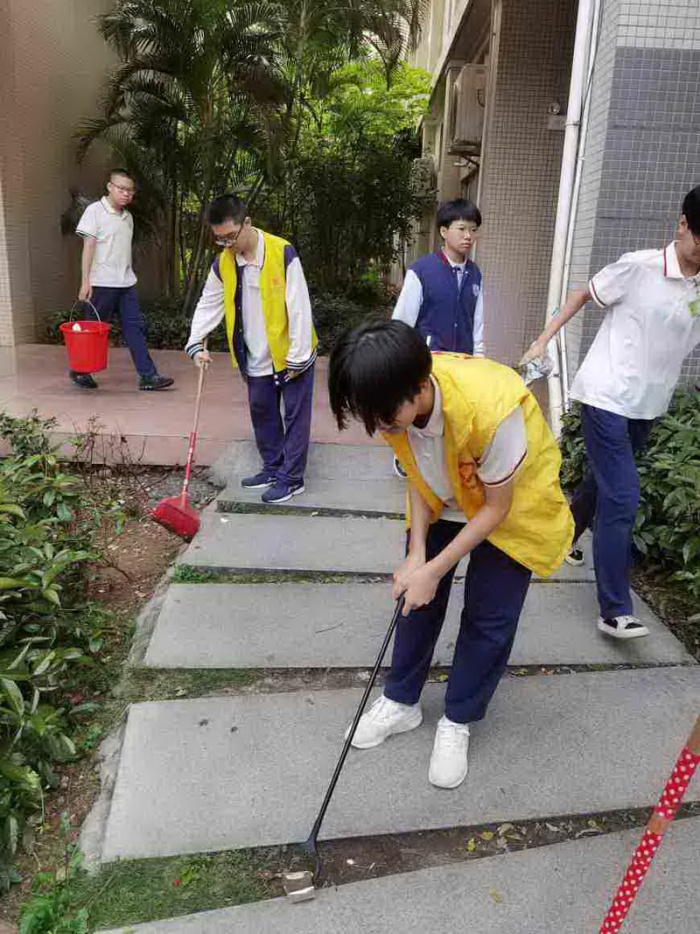 一聲令下,下午全校性大掃除正式開始。教室、辦公室內(nèi),物品得以擺放整齊,桌椅角落的灰塵得以抹凈,地面得到打掃干凈,給拖得明亮照人,窗戶玻璃也得到清潔。師生們用實(shí)際行動(dòng)實(shí)現(xiàn)了“窗明幾亮”。室外,樓梯間、走廊、公共活動(dòng)區(qū)及公共洗手間等,這些地方全不放過,各班級(jí)包干各自負(fù)責(zé)的區(qū)域,清潔、打掃、除塵,全不在話下。在各班級(jí)努力掃除下,校園各個(gè)區(qū)域都變得清潔一新。