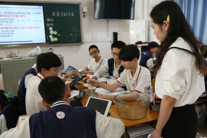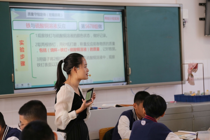 賽后評委陸朝寧校長對參賽老師的課做了精準(zhǔn)精彩的點(diǎn)評。他指出:韋鳳立老師的課充分體現(xiàn)了學(xué)生的主體性,先學(xué)后教理念;梁鳳仙老師的課注重引導(dǎo)學(xué)生如何進(jìn)行實(shí)驗(yàn)探究;董建清老師的課主線清晰,以波義耳、拉瓦錫兩位科學(xué)家的研究對比引入,引導(dǎo)學(xué)生對待實(shí)驗(yàn)態(tài)度嚴(yán)謹(jǐn),否則重大的科學(xué)發(fā)現(xiàn)將與你擦肩而過。而方琦真老師的課語言富有感染力,課堂上能熟練運(yùn)用希沃白板5,將學(xué)生分組探究實(shí)驗(yàn)的投屏分享,引導(dǎo)學(xué)生積極思考。
