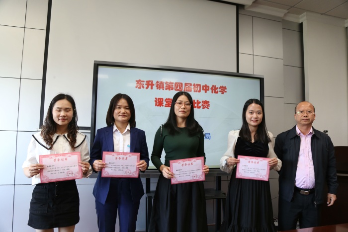 經(jīng)過評委決定:本次教學(xué)比賽方琦真、董建清老師獲鎮(zhèn)一等獎(jiǎng),梁鳳仙、韋鳳立老師獲鎮(zhèn)二等獎(jiǎng)。總分第一名的方琦真老師將代表東升鎮(zhèn)參加在永寧中學(xué)舉辦的中山市第四屆初中化學(xué)教師教學(xué)能力大賽的初賽。