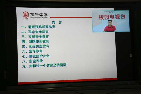 本次暑假安全教育活動(dòng)由東升中學(xué)德育處黎國(guó)明副主任作專題講座。講座中安全教育內(nèi)容較為廣泛,從“交通安全,飲食安全,防火、防觸電、防汛防洪、防溺水、防拐騙、防暴力侵害”等方面進(jìn)行了解說(shuō);另外,還組織大家觀看了關(guān)于預(yù)防性侵、防溺水、交通安全、網(wǎng)絡(luò)安全等教育視頻。