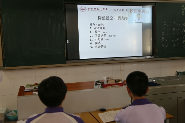 中山市初三中考英語聽說考試即將進(jìn)行。為了讓東升中學(xué)學(xué)生在中考中取得佳績,6月18日下午,東升中學(xué)有幸請來中山一中初中部范振海副校長(現(xiàn)兼任西區(qū)中學(xué)校長)對初三學(xué)生英語聽說考試進(jìn)行答題技巧指導(dǎo)。范校長曾任東升鎮(zhèn)旭日中學(xué)校長多年,是東升人民的老朋友。范校長的講座題為《仰望星空,腳踏實地》。作為資深的英語專業(yè)教師,他高屋建瓴地從宏觀和微觀的角度對英語聽說考試進(jìn)行了精準(zhǔn)到位的分析,并從對話理解、短文理解、朗讀短文、情景對話、口頭作文等五個方面各個擊破,為在座的學(xué)生提供了很好的方法指導(dǎo)。由于防疫需要,本次指導(dǎo)講座是利用校園電視臺進(jìn)行“現(xiàn)場直播”的,東升中學(xué)初三全體學(xué)生和全體英語老師實時到班參與和觀看了指導(dǎo)講座。