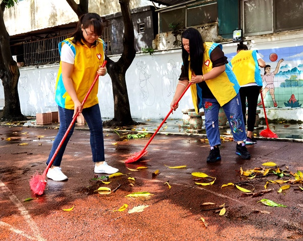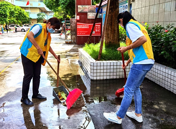 培訓(xùn)結(jié)束后,志愿者們手持掃帚、小鏟子等工具,在雨中有條不紊地分頭行動起來。他們相互配合,集中對校園及門前路段進行大清掃,改善學(xué)校及周邊環(huán)境衛(wèi)生。盡管雨勢漸大,志愿者們個個熱情高漲,干勁十足,在大家的共同努力下,校園面貌煥然一新。