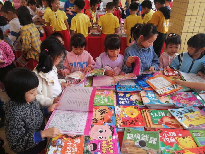 最是書香能致遠(yuǎn),最是讀書的姿態(tài)最迷人:孩子們有的在細(xì)心挑選書籍,有的正認(rèn)真閱讀,還有的三五人小聲交流著購買什么樣的圖書;已經(jīng)淘到自己心愛書籍的同學(xué),則靜靜地坐在凳子上,認(rèn)真地品讀起來了……