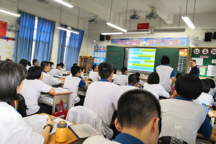 教研活動以年四揚校長在初三(1)班的一節(jié)別開生面的英語中考備考示范課為開端。課堂上,年校長以個人興趣愛好為話題,設(shè)計了聽錄音回答問題、情景對話、寫作等學習任務,通過頭腦風暴的方式,對相關(guān)的話題詞匯進行梳理,幫助學生形成語義網(wǎng)絡。充分調(diào)用“聽、說、讀、寫”各種語言技能,并通過聽和說的語言運用過程,達到對語言知識的梳理和鞏固。此外,年校長在寫作任務設(shè)計時還提供一些核心詞匯和目標語言以便學生能更自如地表達。一節(jié)課下來,學生有討論,有展示,有寫作,動靜結(jié)合,利用小組合作學習,學生的積極性與參與度高。年校長這節(jié)示范課,給初三備課組的老師指引了備考的方向,也受到了英語科組全體老師的一致好評。